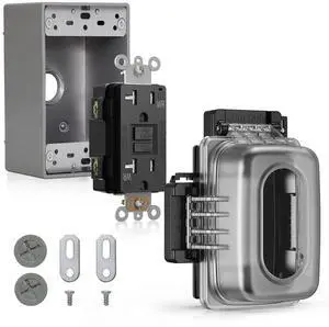 ELEGRP Outdoor GFCI Outlet with in Use Cover and Box Kit, 1 Gang, 20 Amp TRWR Self-Test GFI Receptacle, Extra Duty Metallic Electrical Outlet Box, Lockable in Use Cover, UL Listed, Black, 1 Pack