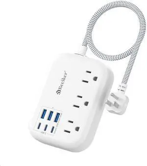 Extension Cord with Multiple outlets, 10 Ft Braided Power Cord, 6 Widely Outlets with 3 USB Ports (1 USB C), Ultra Thin Flat Plug, 3 Sided 1050J Power Strip Surge Protector for Home Travel Office