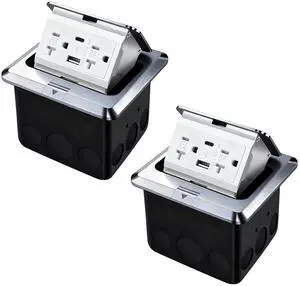Floor Pop Up Outlet, Pop Up Waterproof Floor Electrical Box with 4.8A USB Chargers and 2 Outlet Receptacle Stainless Steel Cover (Type-C Silver 2pack)