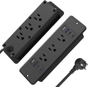 Mountable Power Strip Recessed Power Strip with USB 4 Outlet 2 USB Multiple Protection Built in Conference Desk Counter Workbench for PC Home Electric Appliance ETL Listed(Black)