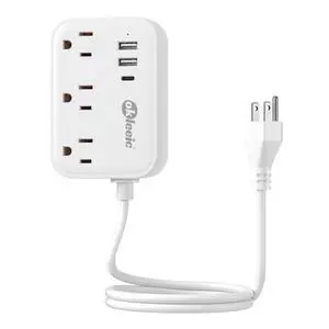 Power Strip with 3 AC Outlets, 30W USB-C Port, 2 USB-A Ports & 6ft Extension Cord LED Indicator, Fast Charging for Laptops, Phones & More Compact Design for Home, Office & Travel