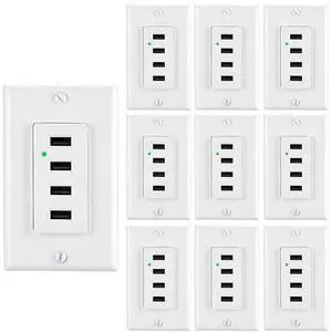 LEOD 4.2A Output High Speed 4 USB Port Charger Wall Outlet with 2 Types Wall Plates(Standard and screwless Included), USB Charger Receptacle, White,UL Listed[10 Pack]