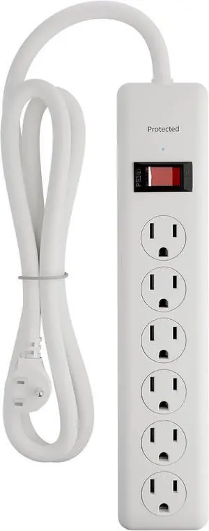 BN-LINK 6-Outlet Power Strip Surge Protector 1-Pack, 4-Foot Extension Cord, 600 Joules, Twist-to-Close Safety Covers, 90 Degree Flat Plug, Overload Protection, White