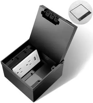 Recessed Floor Electrical Outlet Kit,Flat Hidden Socket Kit,Hidden Duplex 15A Tamper-Resistant Receptacle Outlet and 2.1A USB PortWaterproof Electrical Outlet Covcer Box,Black