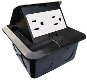 Floor Electrical Outlet Pop Up Kitchen Countertop Waterproof Sockets Pop Out Receptacle Stainless Steel Box Black Cover 15A
