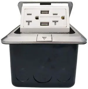 4.8A USB Chargers Pop Up Floor Waterproof Electrical Outlet Receptacle Stainless Steel Box,Black