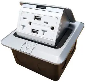 Pop Up Countertop Floor Outlet Electrical USB Sockets Waterproof Kitchen Pop Out 20A Receptacle Stainless Steel Box Silver Cover
