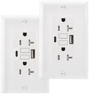 Outlet with USB in-Wall,2Pack AC125V 15Amp Self-Test with LED Indicator Tamper Resistant DC5V 4.8A Charger Outlet with USB Ports A&C,ETL Listed,White