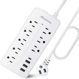 Surge Protector Power Strip with Flat Plug, 5 FT Extension Cord with 6 AC Outlets 4 USB Ports(2 USB-C),1050J Surge Protection, Wall Mountable Charging Station for Office, Home, White