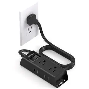 Power Strip with USB - Wall Mountable Power Strip with 4 USB Ports & 3 Outlets with On/Off Switch & 5ft Extension Cord for Cruise Ship, Travel, Hotel, Office (Black)