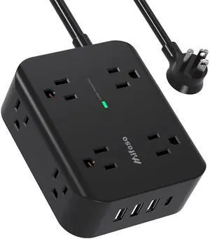 Extension Cord Surge Protector Power Strip - Flat Plug Braided Power Bar with 8 Widely Outlets and 4 USB Ports(1 USB C), Multi Plug Wall Mount Desk USB Charging Station for Home Office