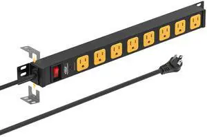 Heavy Duty Surge Protector Power Strip 20 Amp Individual Switches. 6FT 12 Gauge Extension Cord with Multiple Outlets. Kitchen, Garage, Shop, Industrial Wall Mount Electric Extender, Yellow.