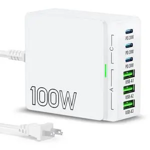 USB C Charger Block Charging Station: 100W 6 Port GaN Fast Charging Brick Hub Cube Box - PD 3.0 Type C & USB A Wall Charger Power Adapter for All iPhone 17 iPad Samsung Android Pixel Series