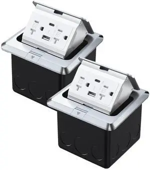 Floor Pop Up Outlet, Pop Up Waterproof Floor Electrical Box with 4.8A USB Chargers and 2 Outlet Receptacle Stainless Steel Cover (Type-C Silver 2pack)