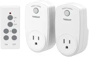 2 Pack Remote Control Outlet, Wireless Electrical Plug Switch for Lights, Lamps, Fans, 100ft RF Range, 1200W (1 Remote + 2 Outlet)