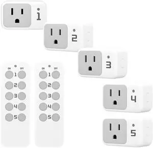200FT Range Remote Control Outlet, No Interference Strong Signal, Indoor Wireless Outlet Switch for Lamps, Fans, Lights, 15A/1800W, ETL Listed (5 Outlets + 2 Remotes)