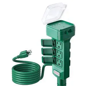 Outdoor Power Stake Timer, Dusk to Dawn Light, 6 Grounded Outlets Power Strip Weatherproof, 6FT Extension Cord Countdown Outlet for Yard, Garden, Christmas, Outdoor Light, 1875W/15A, Green