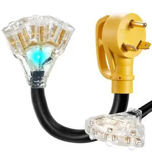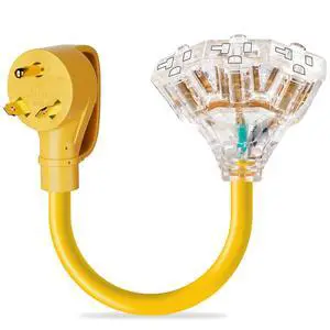 30 Amp to 20 Amp 110V RV Distribution Adapter NEMA TT-30P Male to 3X 5-15R/5-20R 30 Amp to Triple 15 Amp / 20 Amp 3-Prong to Multiple Household Outlet RV Generator Distribution Cord
