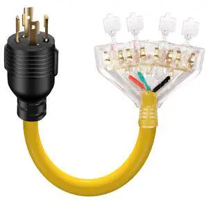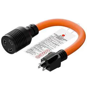 30A to 15/20A Generator Adapter cord Compatible with NEMA L14-30P Male to 5-15R/5-20R or 6-15/6-20R Female, 30A 4 Prong Locking Generator Plug to 15/20A Household Regular Connector 1FT