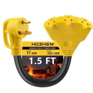 30 Amp to 20 Amp Adapter 110V RV Distribution Adapter, NEMA TT-30P Male to 3X 5-15R/5-20R Female, ETL Listed RV Generator Household Outlet, 1.6 FT