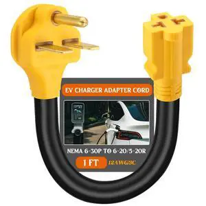 6-30P to 6-20/15R or 5-20/15R EV Adapter Cord Compatible with NEMA, 30 Amp 3 Prong 240V Male 6-30P Female 6-20/15R or 5-20/15R T Blade for EV Charger Welder Heater, 12 AWG, 1FT, 12 Inch