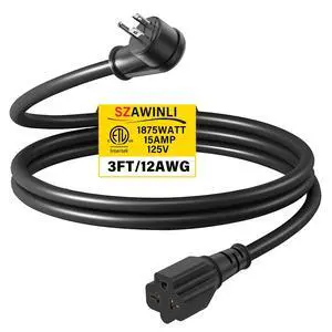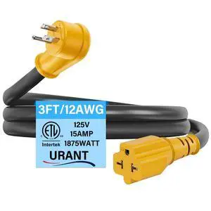 12AWG Heavy-Duty Extension Cord,4-in-1 15A Household AC Plug to 20A T-Shaped Blade Adapter Cable,3FT Extension Cord Power Adapter,NEMA 5-15P to 5-15R,5-20R,6-15R,6-20R AC Extension Wire(Black).