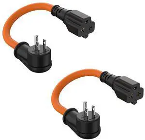 [2PACK] 90-Degree 15 Amp Household AC Plug to 20 Amp Adapter Cable 12AWG, Nema 5-15P to 5-20R, 5-15P to 6-15R/20R T-Blade 20Amp to 15Amp Right-Angle Plug Adapter,125V 15A to 250V 20A Power Cord,1FT