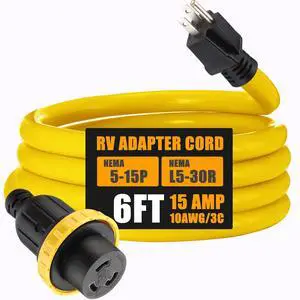6ft 30 Amp to 15 Amp 110 Volt RV Adapter Cord Compatible with NEMA 5-15P to L5-30R, 3 Prong Locking RV Power Adapter 15A Household Male to 30A RV Female for RV Trailer Camper