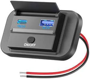 12V USB Outlet Surface Mount Lightweight PD USB C 30W and QC 3.0 18W Ports for Car, 12 Volt Cigarette Lighter Replacement Charger Socket Panel with Button Switch for RV Bus Marine Motorcycle