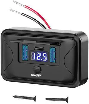 USB C Car Charger Socket 12V USB Outlet 2 Pack: Aluminum Metal 78W Dual PD 30W and 18W QC3.0 Port Multi Charger Outlet with LED Voltmeter Power Switch for RV Motorcycle Boat Marine