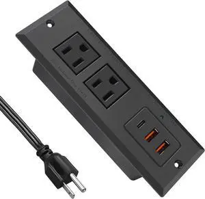 20W Recessed Power Strip USB C Fast Charge Desk Power Outlet Type C Flush Mounted Extension Power Plug for Conference Countertop Desktop Drawer Sofa ETL Listed 10ft Power Cord