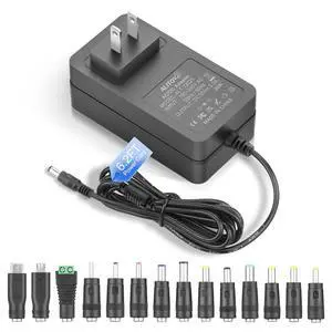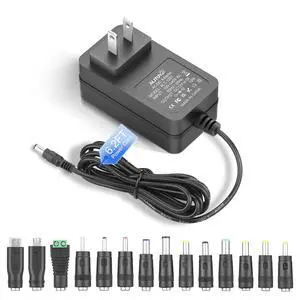 12 Volt Power Supply 3A 36W Universal AC Adapter 100-240V 50-60hz to DC 12V Power Cord 3Amp 2.5A 2A 6.5ft with 14 Tips for LED Strip Light CCTV Security Camera PC Monitor DVD Player and More