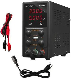 DC Power Supply Variable 30V 5A, Hyelec Switching Power Supply with 5V 2A USB Output, Adjustable Regulated Power Supply with 4-Digits LED Power Display, Alligator Leads Including,110V Input Voltage