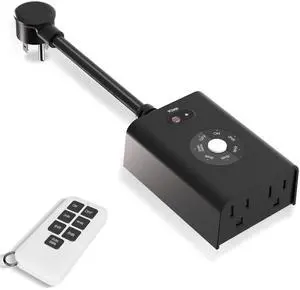 Outdoor Light Timer Waterproof, Remote Control Dusk to Dawn Light Sensor Timer, 100 FT Range, Plug in, 2 Grounded Outlets for Home and Garden, 15A/1875W, ETL Listed