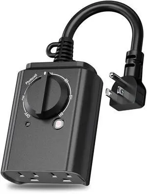 Outdoor Light Timer with Dusk to Dawn Sensor, Weatherproof Dual Grounded Outlets for Christmas/Halloween Decorations, 15A 1/2HP ETL Listed