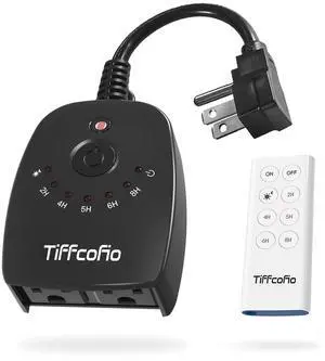 Outdoor Light Timer Waterproof, Remote Control Dusk to Dawn Light Sensor Timer, 100 FT Range, Plug in, 2 Grounded Outlets for Home and Garden, 15A/1875W, ETL Listed