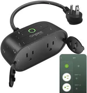 Outdoor Plug Wi-Fi Outlet, Dual Individual Sockets Smart Plug with IP64 Waterproof, Works with Alexa Google Assistant & SmartThings, No Hub Needed for Smart Home Control, 2.4G WiFi Only