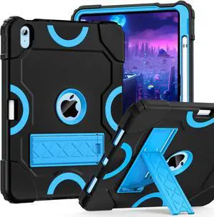 Cantis Case for iPad 11-inch (A16) 2025/ iPad 10th Generation 2022 (10.9 inch) Shockproof Cover 10th Generation with Pencil Holder & Kickstand Black+Blue