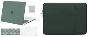 MOSISO Compatible with MacBook Pro 13 inch Case 2016-2020 A2338 M1 A2289 A2251 A2159 A1989 A1706 A1708, Plastic Hard Shell&Vertical Bag with Pocket&Keyboard Skin&Screen Protector&Pouch, Midnight Green