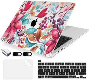 AMCJJ Compatible with MacBook Air 13.6 inch Case 2025 2024 2023 2022 M4 A3240 M3 A3113 M2 A2681, Plastic Hard Shell Case;Keyboard Cover&;Screen Protector - Floral