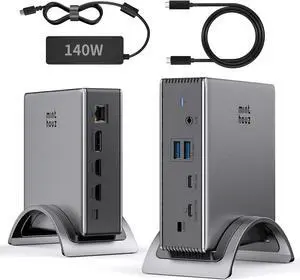 USB C Docking Station, PD3.1 Docking Station 3 Monitors with 2* DP + HDMI, 8K@30Hz/4K@144Hz, 140W Charger, USB-C 10Gbps, 2* USB-A 5Gbps, Gigabit Ethernet, Audio/Mic, for Windows,Dell,HP,Lenovo