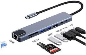 USB C Docking Station, USB C Hub, 10 in 1 USB C Docking Station con HDMI 4K, 2 USB 3.0, 2 USB 2.0, USB C, 100W PD, Audio, SD/TF Compatible con MacBook Pro/Air, Surface Pro/Go, Thunderbolt 3- Model #: Fahint418367073016