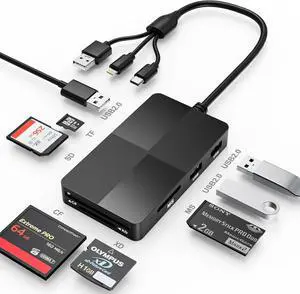 USB 3.0 Memory Card Reader for SD/TF/CF/XD/MS/Micro SD/SDHC/MMC Multi 5-in-1 Lightning/USB C/USB A Memory Adapter for iPhone 15 14 13/iPad/Android//Mac Book/Laptop/Camera/Hard Disk/Flash Drive