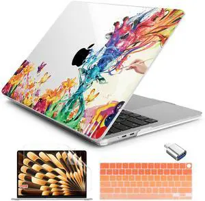 Batianda Case for New MacBook Air 13 inch 2025 M4 2024 2022 Model A3240 A3113 M3 A2681 M2, Designed Protective Hardshell Keyboard Cover & Screen Protector and USB-C Adapter, 3D Flower