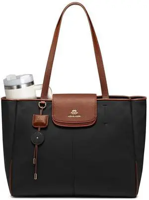 LOVEVOOK Laptop Tote Bag for Women,Nylon Work Totes with 15.6 Inch Laptop Compartments, Lightweight Computer Purse with Large Cup Holder,Travel Tote with Luggage Straps