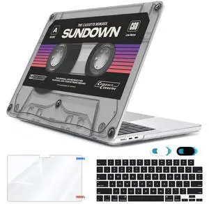 HOHAIYOO Compatible with MacBook Air 13.6 inch Case 2025 2024 2023 2022 Release M4 A3240 M3 A3113 M2 A2681 with Touch ID, Plastic Hard Shell Case&Keyboard Cover&Screen Film&Webcam Cover, Cassette Tape