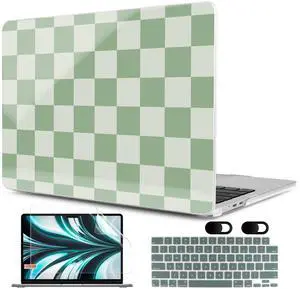 MEEgoodo Case for M4/M3/M2 MacBook Air 13.6 inch Case 2025 2024 2022, Fit Model A3240/A3113/A2681, Laptop Hard Shell with Keyboard Cover Compatible with MacBook Air 13 inch, Green Checkered