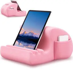 KDD Tablet Pillow Stand with Storage, Foldable iPad Holder for Lap, Desk and Bed, Angle Adjustable Soft Pad Dock with Stylus Mount Compatible with iPad Pro, Air, mini, Book, Phone and Tablet (4-13")