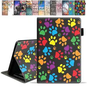 FVAENDHIO Case for Fire HD 10 & Fire HD 10 Plus Tablet (11th Generation, 2021 Release) - Premium PU Leather Cover with Auto Sleep Wake, Rustic Wooden Board Colorful Paw Print