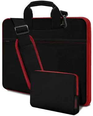 Hseok Laptop Shoulder Bag 15.6-16 inch Case, Durable Shockproof Protective Computer Carrying Briefcase with Multi-Pockets and Strap Compatible with Most 15 15.6 16 inch Notebooks,Black-red
